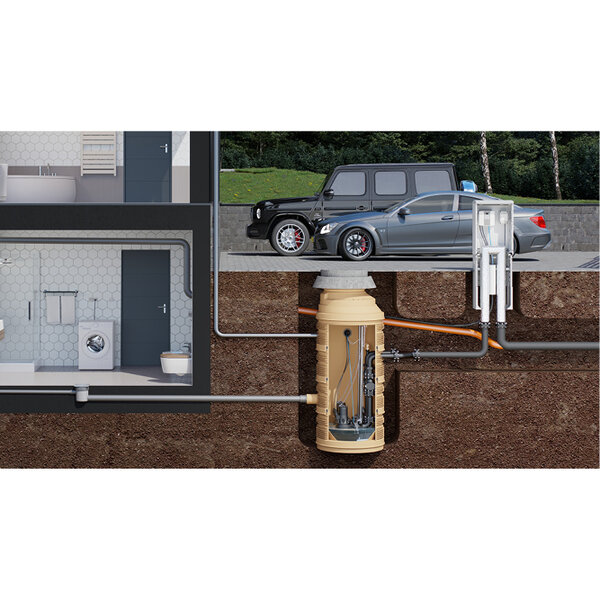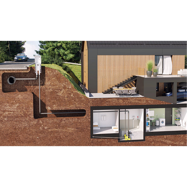 Durch die Außeninstallation bleibt die Schutzfunktion auch bei hohen Rückstauebenen realisierbar, ohne Leitungen durch Decken oder Geschosse führen zu müssen. Dadurch werden außerdem die sonst notwendigen Brandschutzmaßnahmen bei Deckendurchführungen sowie zusätzliche Aufwendungen im Schallschutz eingespart.
