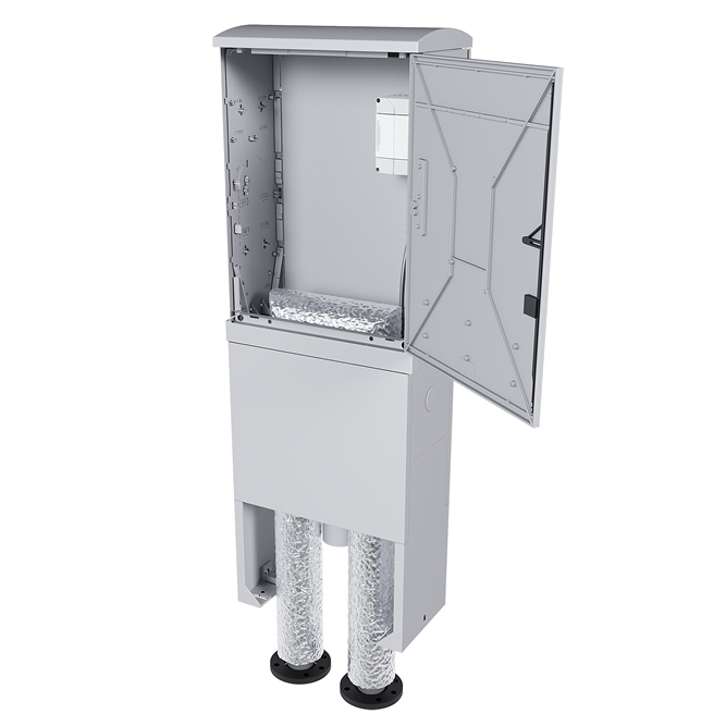 Der ThermoLoop ist eine teils vormontierte beheizbare Rückstauschleife im abschließbaren Außenschrank. Die Wärmedämmung durch eine aluminiumummantelte Rohrbegleitheizung sorgt dafür, dass der Betrieb auch bei Dauerfrost sicher gewährleistet ist. FI‑Schalter und Thermostat für die Begleitheizung sind bereits integriert.