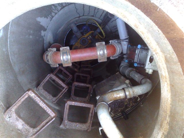 Hier wieder mal ein Suchbild aus dem Feld. Wer sieht die Einbaufehler? Der Schacht ist übrigens nicht ganz dicht, die kleine blaue Tauchpumpe am Boden soll diesen trocken halten.