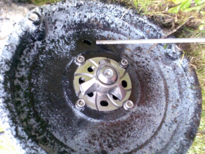 Beim Service fiel uns an dieser Pumpe der wilde Kreisel im Schacht auf. Beim genaueren hinsehen fanden wir dann unten die "Spülöffnung". Die Pumpe hat trotzdem noch ihre Leistung.
