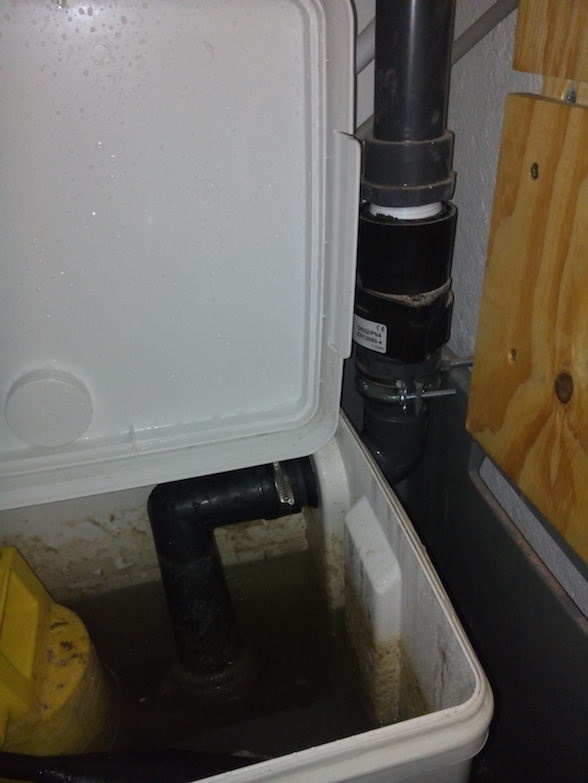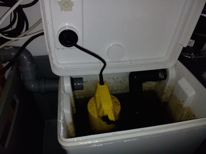 Habe ich einen Konstruktionsfehler gemacht? Muss vielleicht der Zulauf des Schmutzwassers in den Behälter noch nach unten geführt werden, damit das Wasser nicht jedes Mal aufgewirbelt wird? Ist es normal, dass beim Öffnen des Behälters der gesamte Deckel mit Wassertröpfchen bedeckt ist oder sollte er trocken sein?