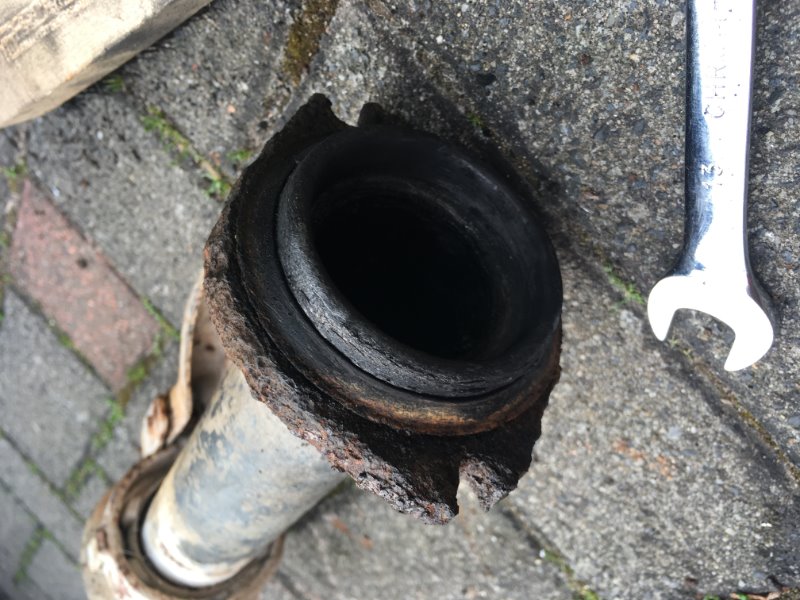 -Spülrohr demontiert, somit Zugang zum Rückschlaggehäuse
