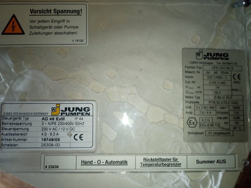 Ich bin zwar kein Elektriker habe hatte dies mal angelernt und nun selbst Straßen- Tiefbaumeister und habe auch schon Hebeanlagen Installiert (außer die Elektronik), dementsprechend wurde die Pumpe auch gewartet im Außenbereich.
