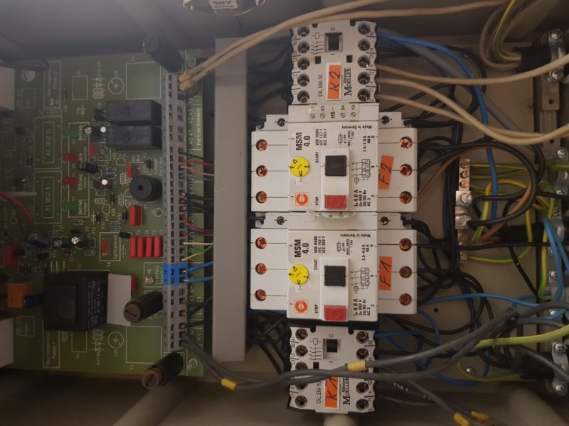 Moin, das Klicken kommt definitiv aus dem Schaltschrank, wenn ich den Handschalter betätige dann hört die Pumpe nach dem Drücken sofort auf. Die rechte Pumpe ist dann aktiv, kann beide Pumpen auch durch Schieben des schwarzen kleinen Hebels rechts neben dem Sicherungselement anschubsen......