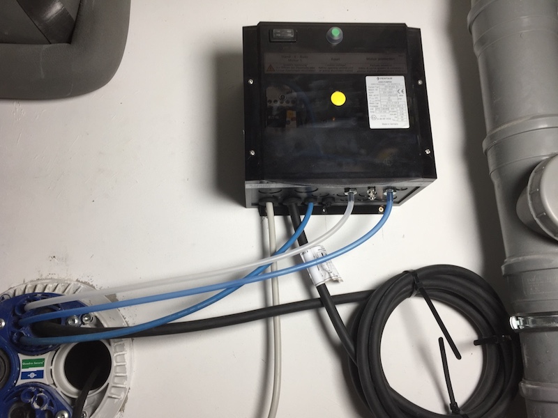 Kabel vom Schwimmerschalter hat der Elektriker etwas kurz geknipst :|