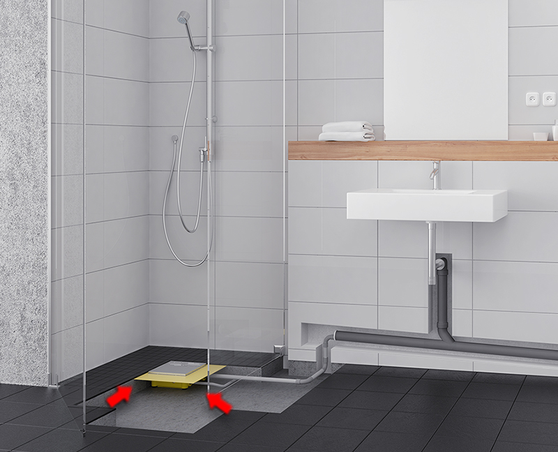 Der entscheidende Faktor ist die Aufbauhöhe des Fußbodens. Fehlendes Gefälle zur oftmals entfernt liegenden Abwasserleitung kann dem Bauherren dabei häufig einen Strich durch die Rechnung machen.